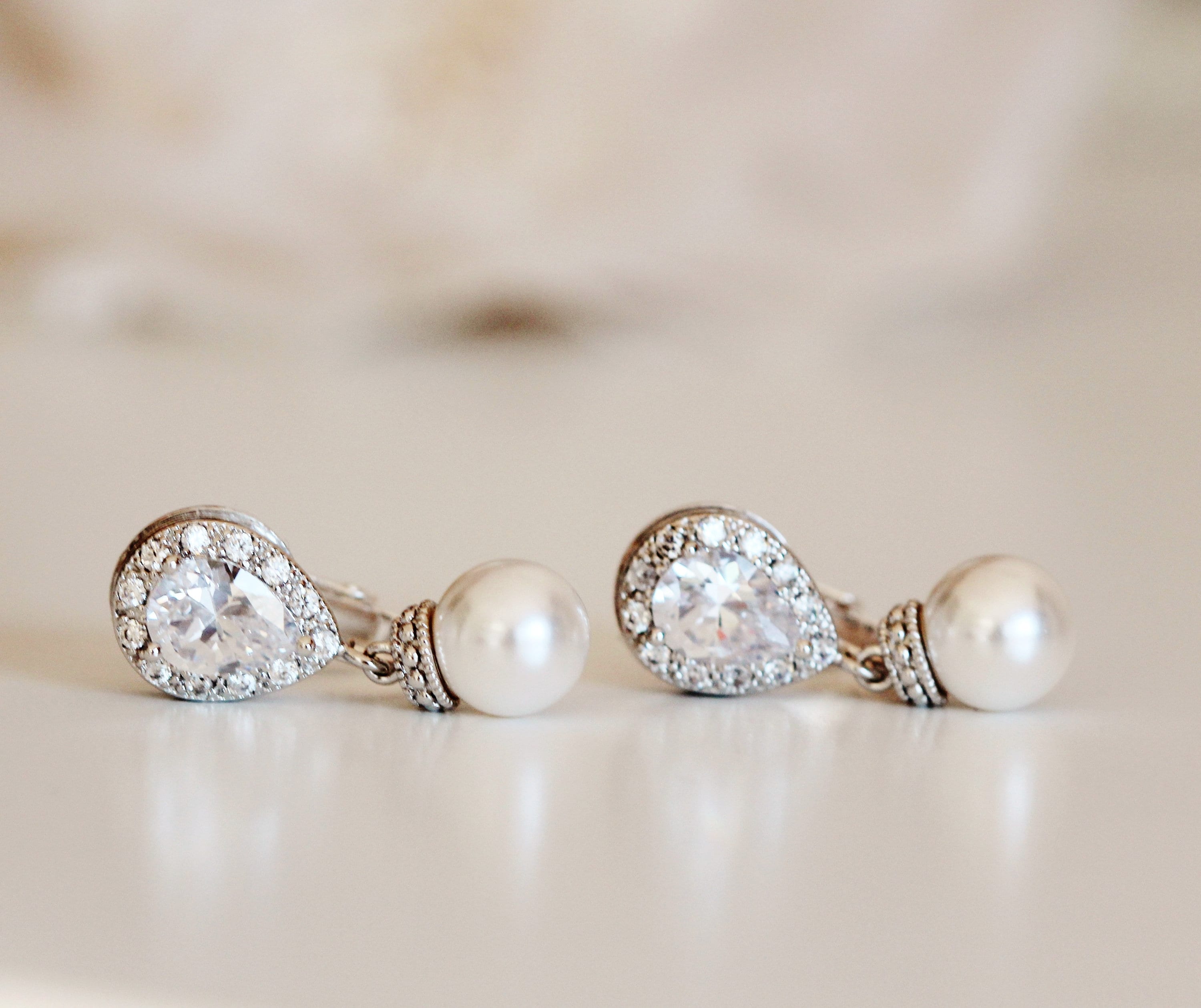 Beautiful, classic, elegant and timeless pearl earrings for bride, bridesmaids, mother of the bride and mother of the groom on weddings or gift for other special occasions. Thanks so much for the beautiful photo from our gorgeous bride Stephanie !