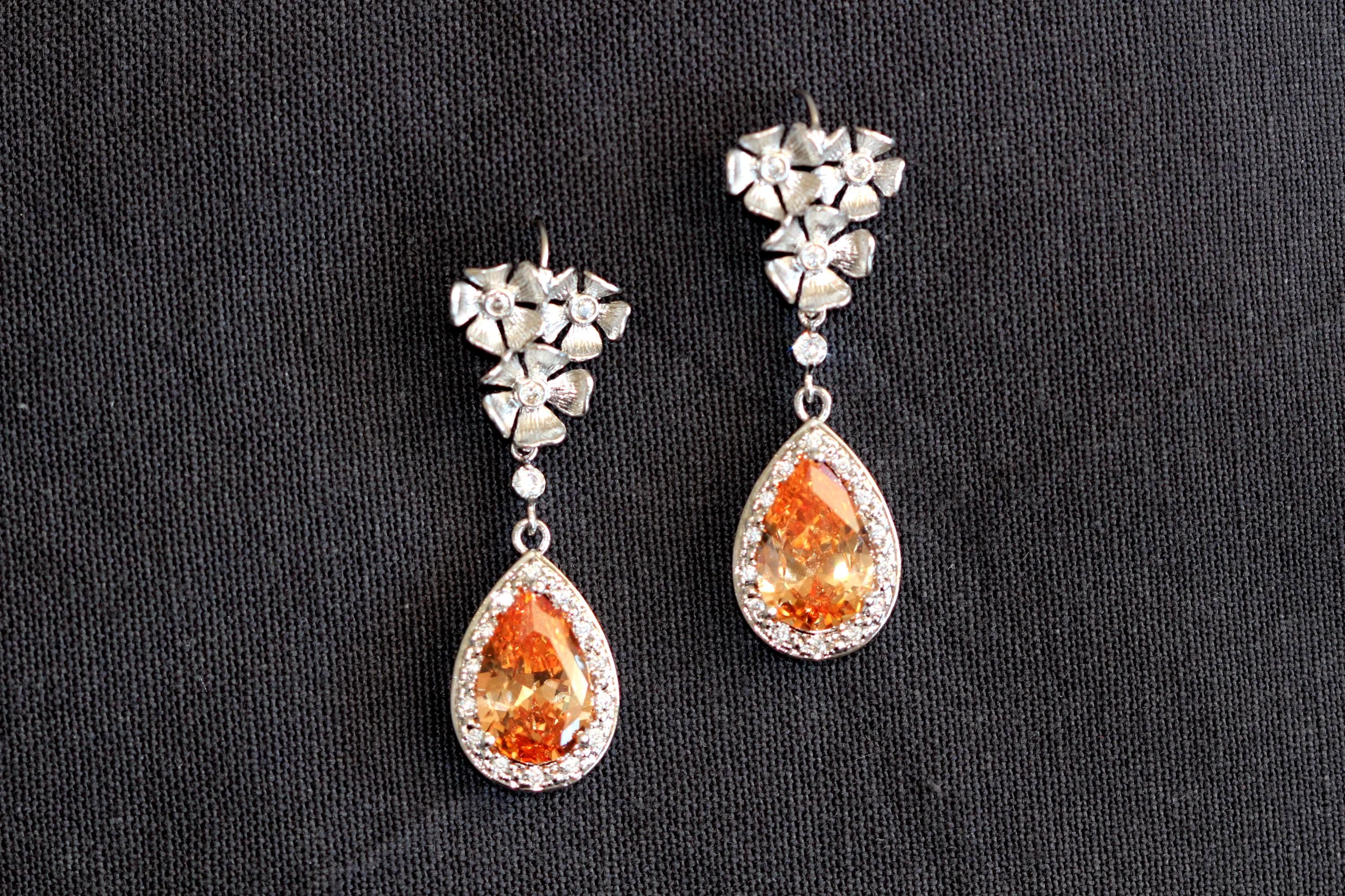 * Tarnish resistant rhodium plated three silver flowers with cubic zirconia crystals in the middle ear hooks.