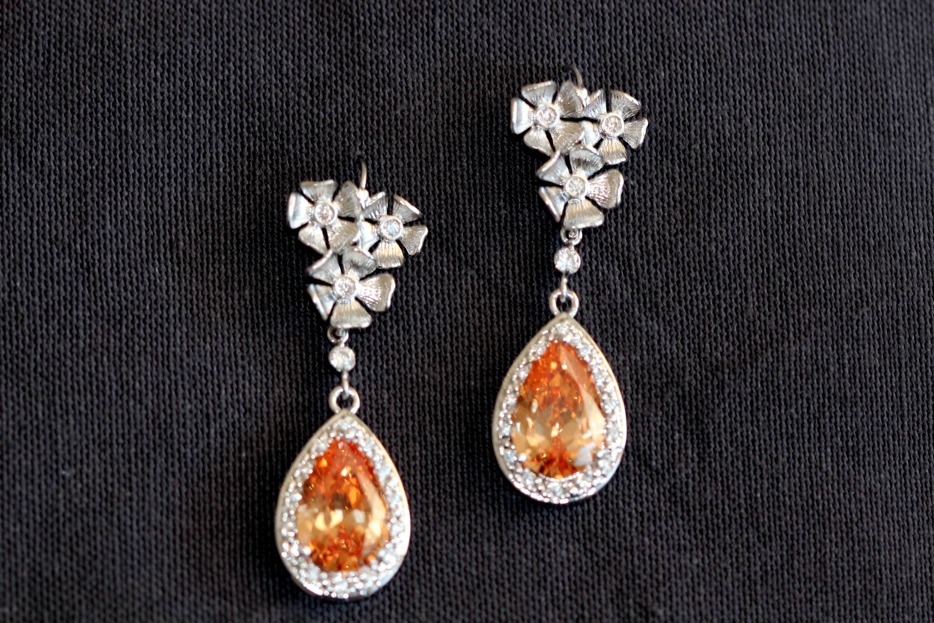 Make a dazzling statement on your big day with this champagne teardrop crystal bridal set. Featuring a sparkling halo design, this matching silver floral earring and bracelet set is perfect for brides seeking timeless glamour and sophistication. Ideal for weddings, anniversaries, or a heartfelt gift for your wife.