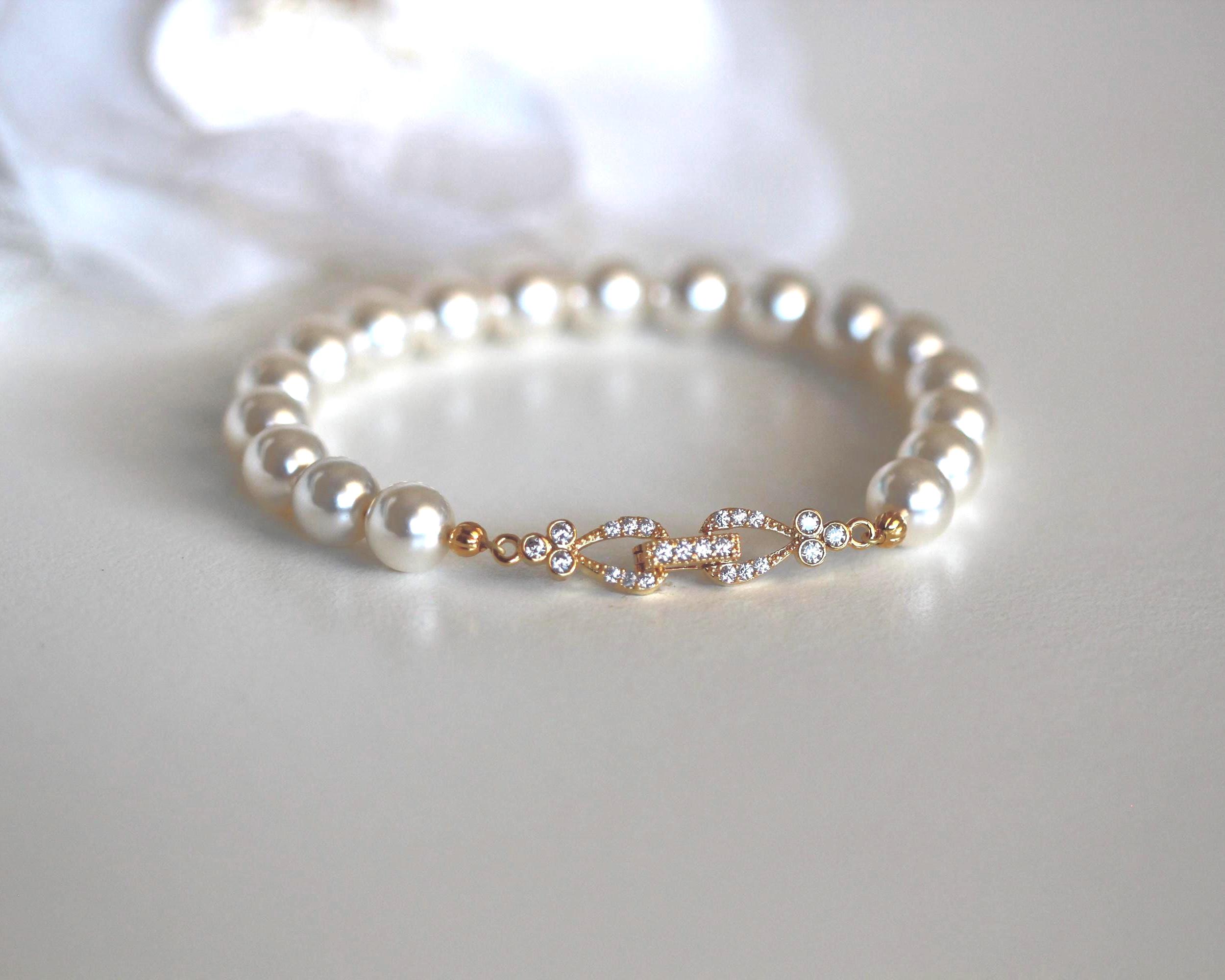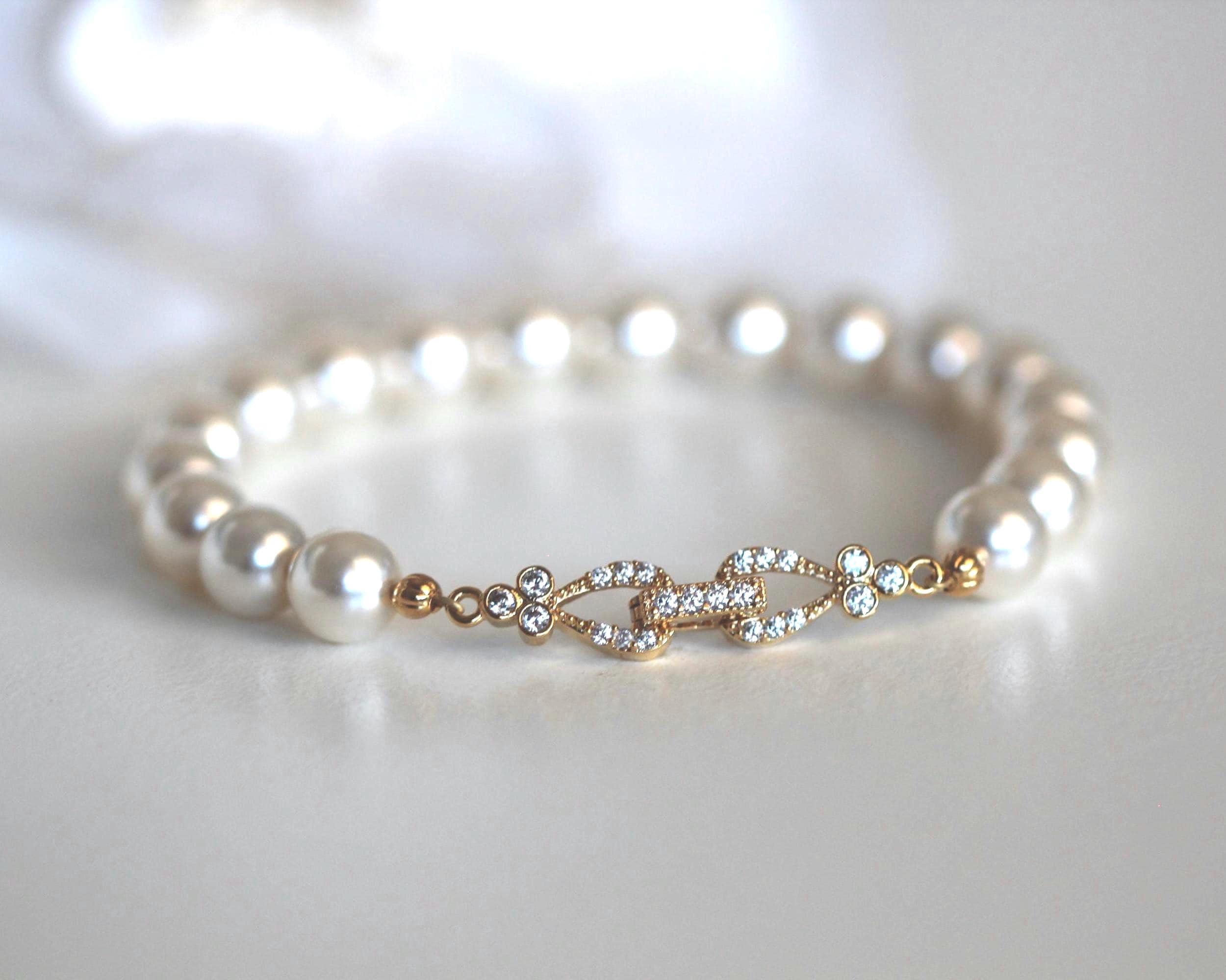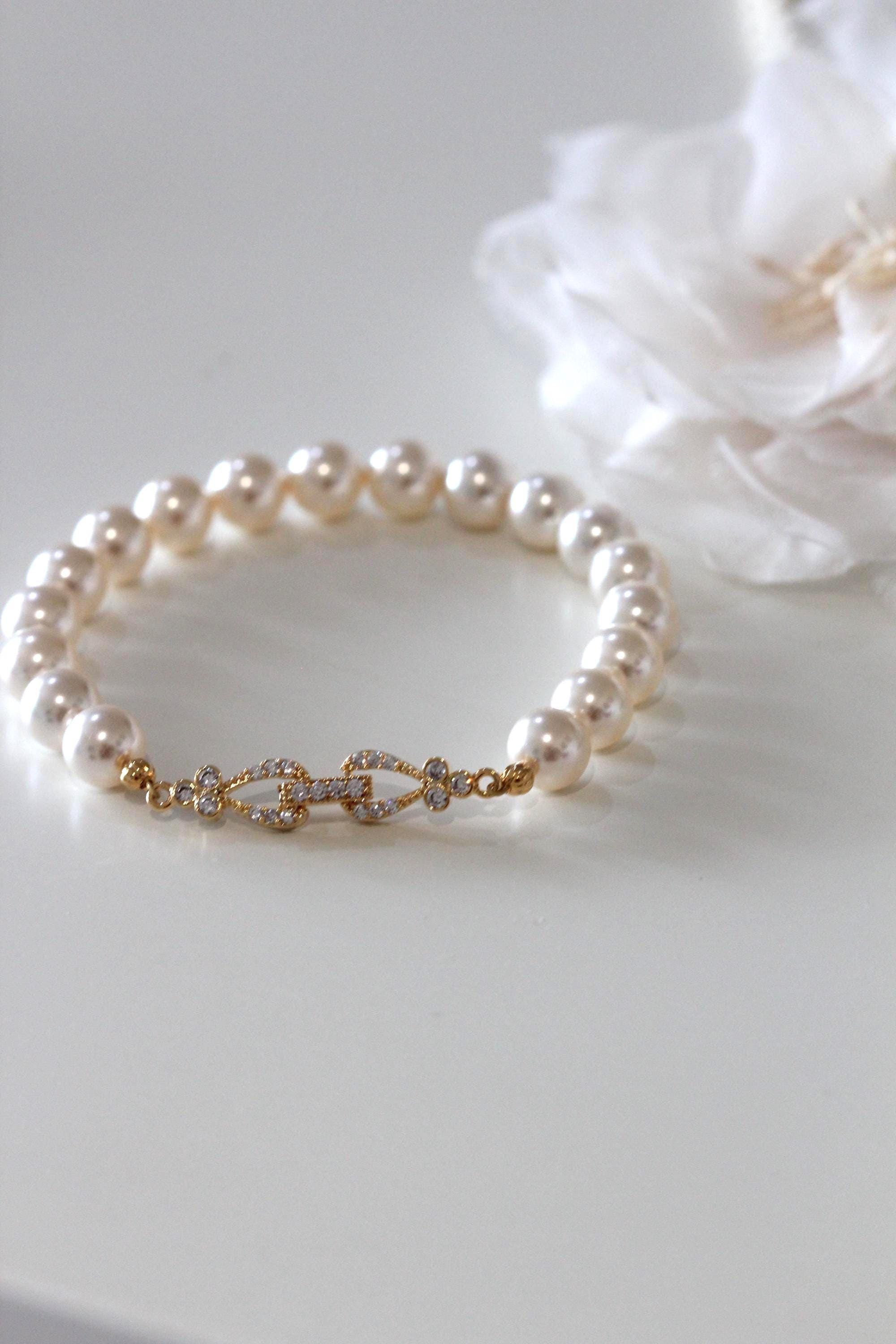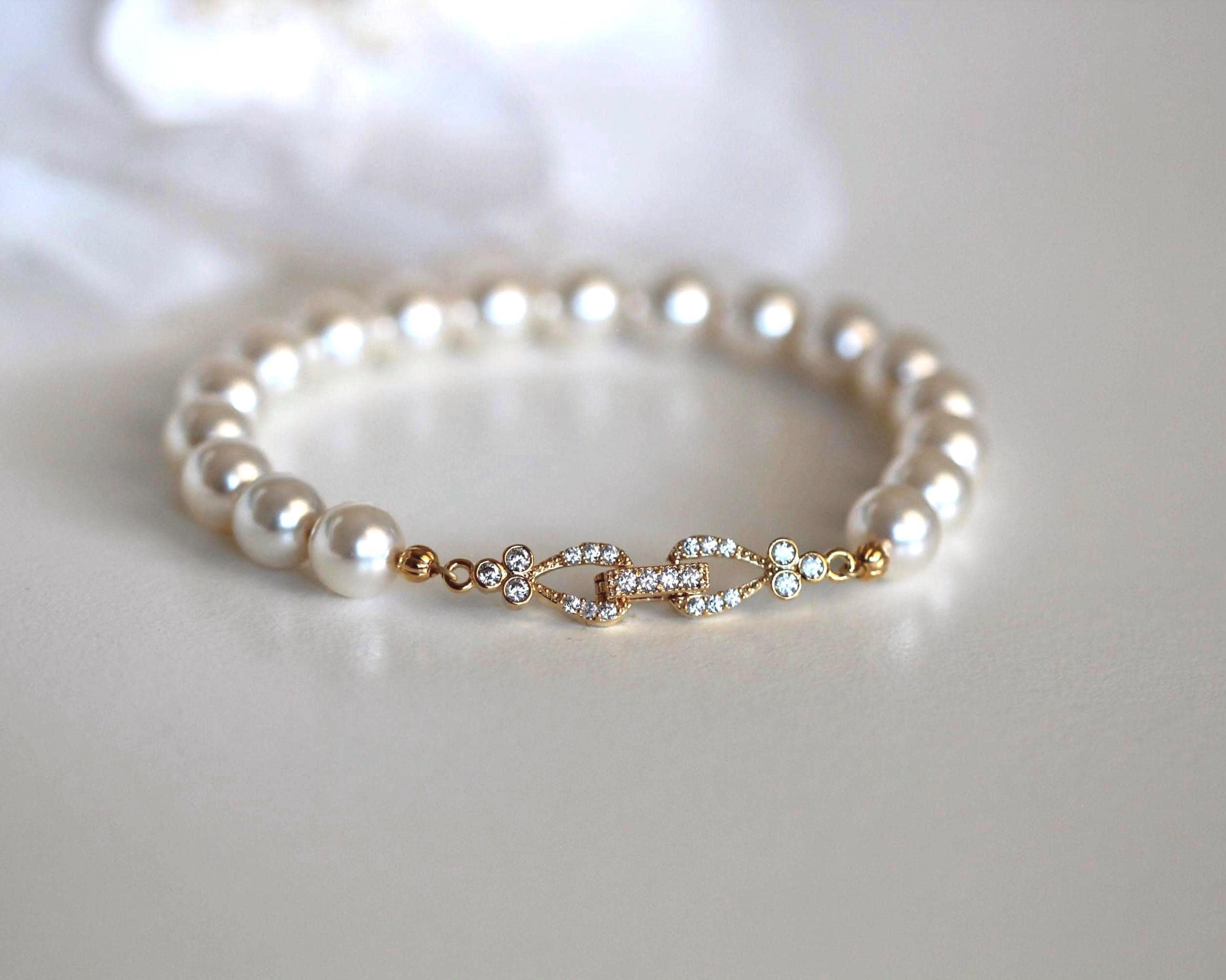 This original design was created by Dream Island Jewellery. Beautiful pearl bracelet with sparkly bling on the clasp, perfect for bride, bridesmaids, mother of the bride, mother of the groom on weddings or other occasions.