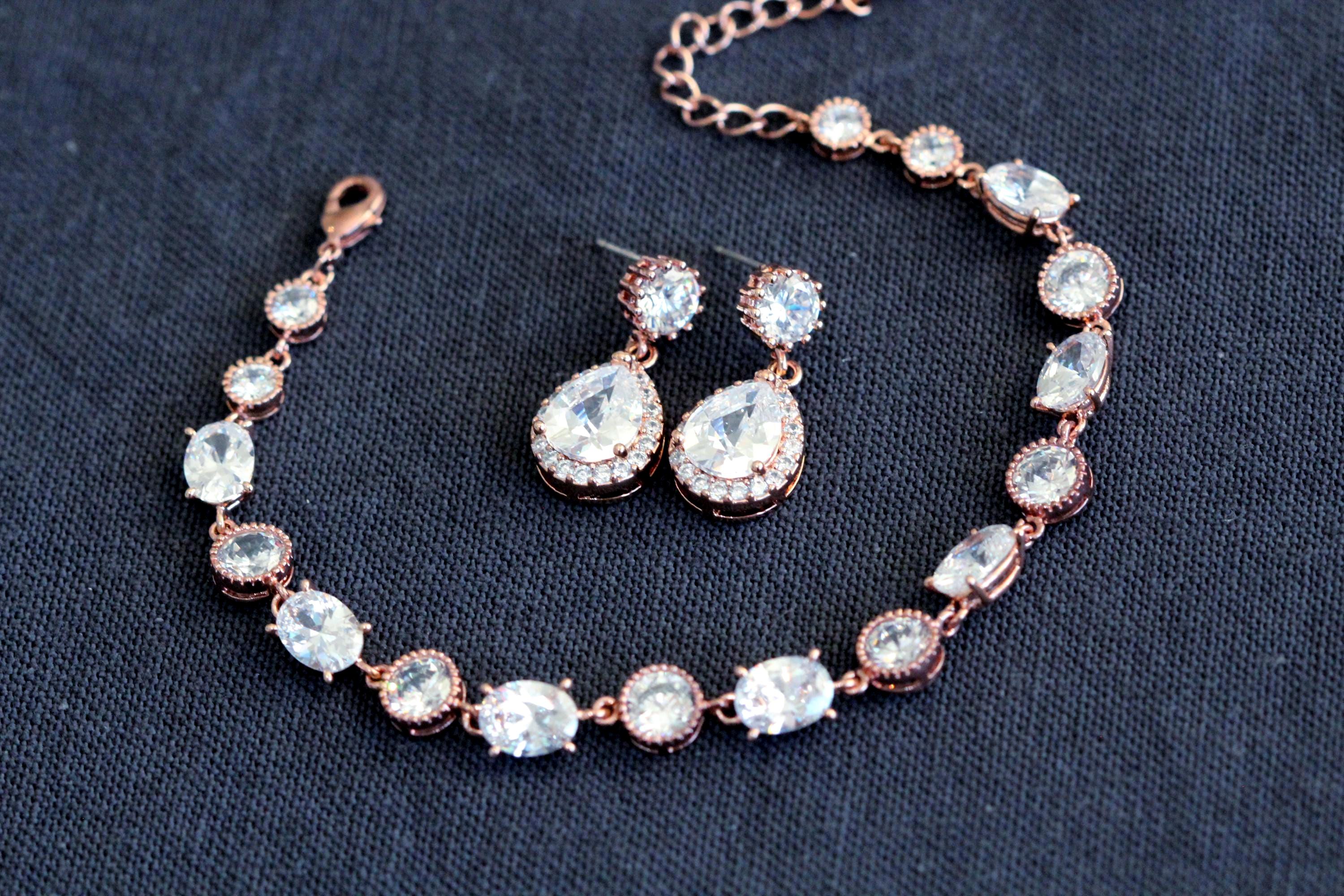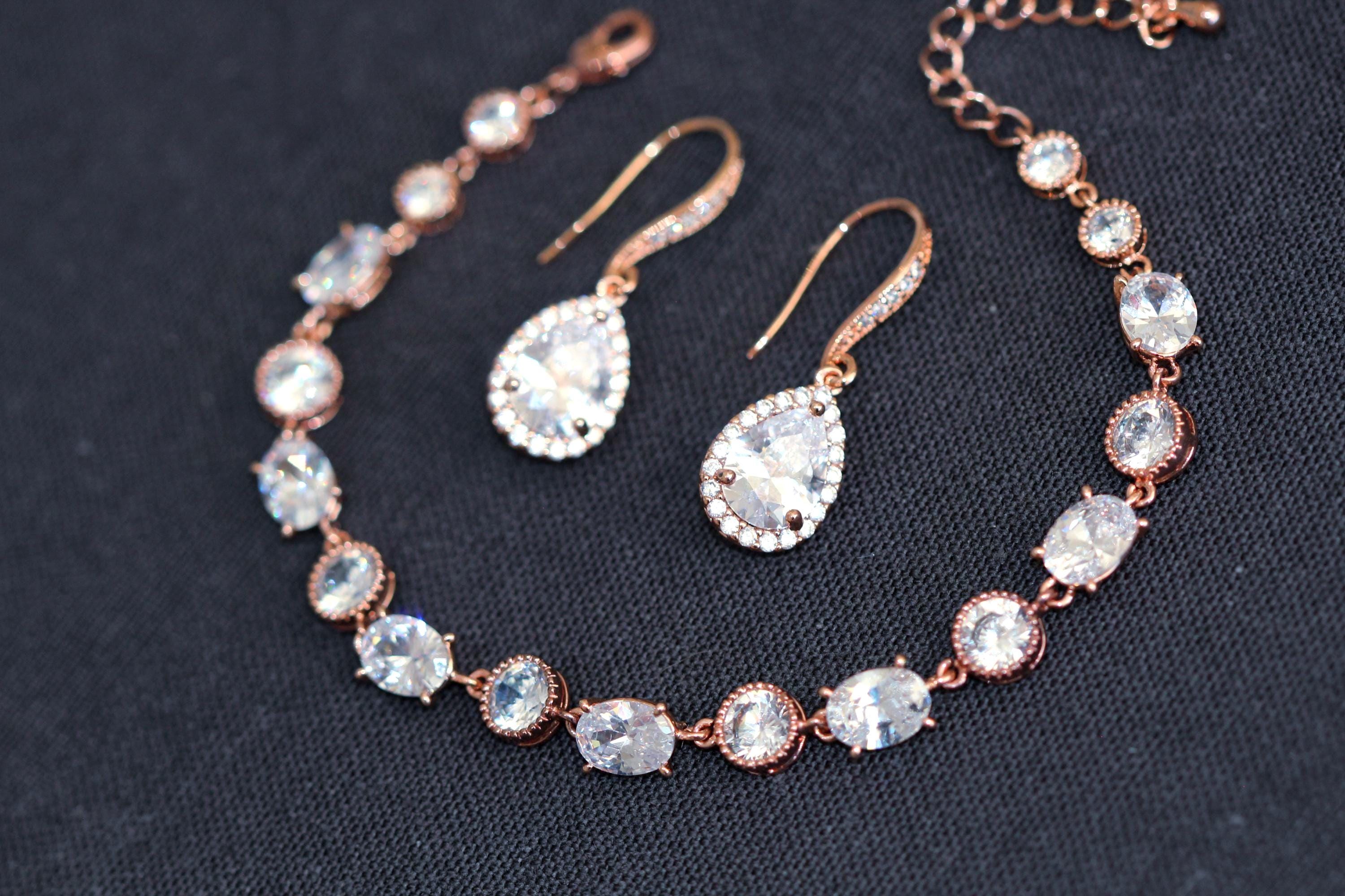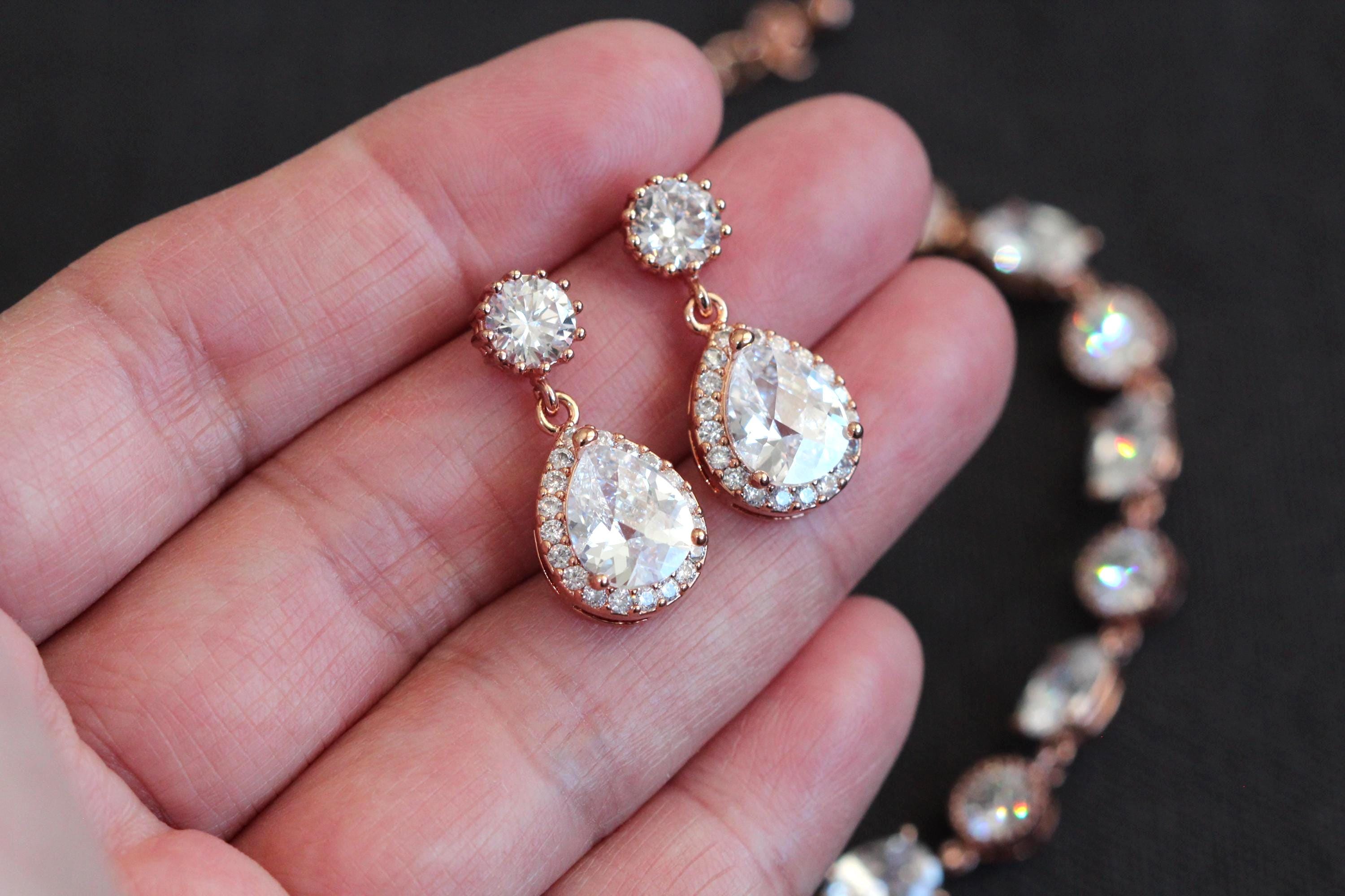 Rose Gold Wedding Jewelry Pink Gold Bridal Earrings Lux teardrop cubic zirconia Earrings Rose Gold Bridesmaid Gift Earrings Rose Gold Earrings