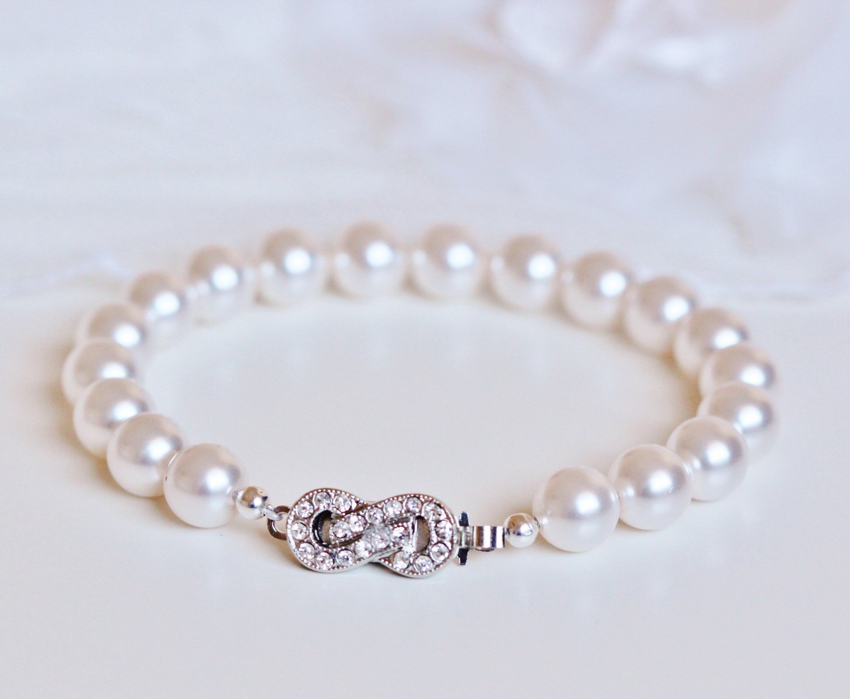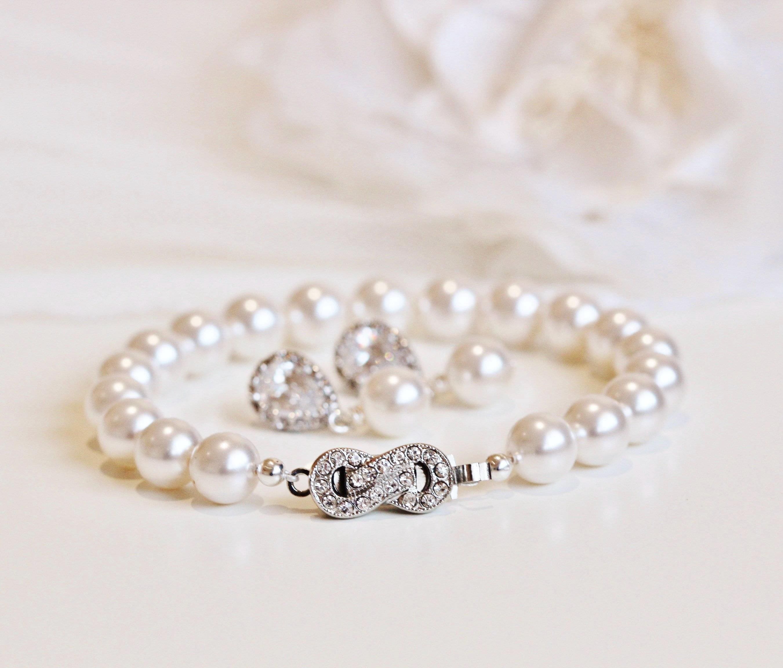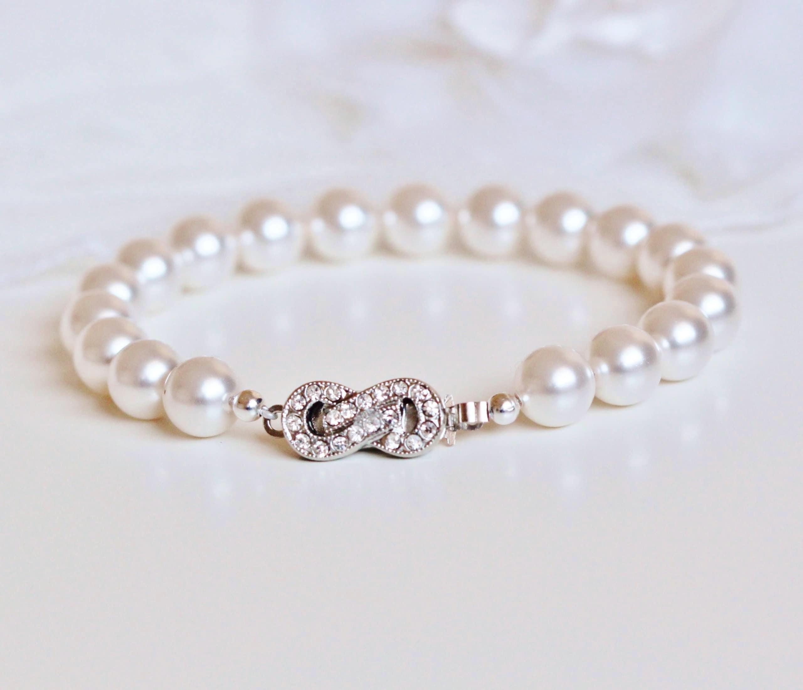 Stunning Infinity Pearl Bridal Bracelet Bridal Jewelry Bridesmaid Gift Bracelet White Ivory Cream Pearl Bracelet Pearl Wedding Jewelry