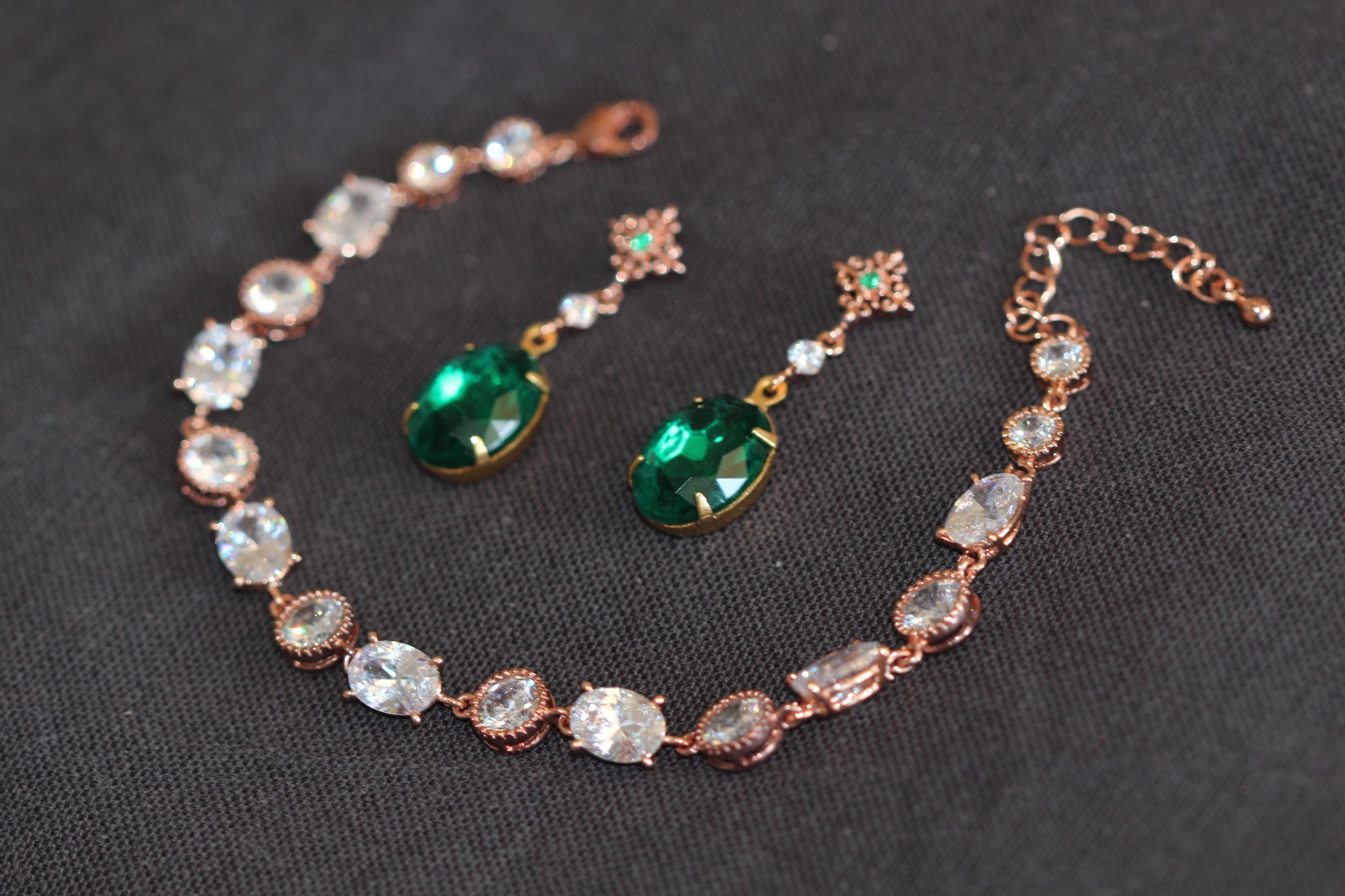 These rich emerald green earrings bring vintage glamour to your bridal party look. Perfect as bridesmaid gifts or statement accessories for jewel-toned weddings, they add elegance and sparkle to any celebration.