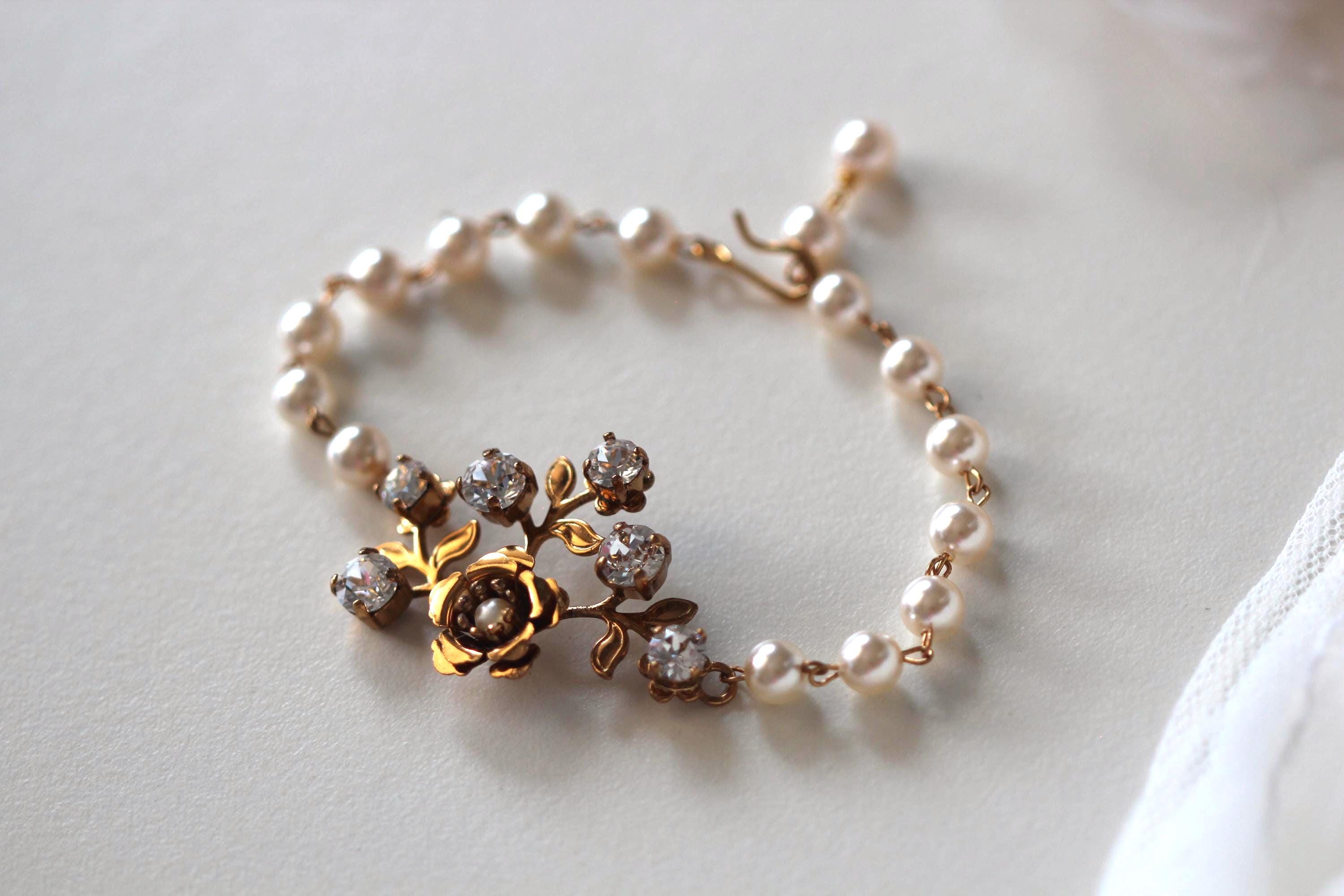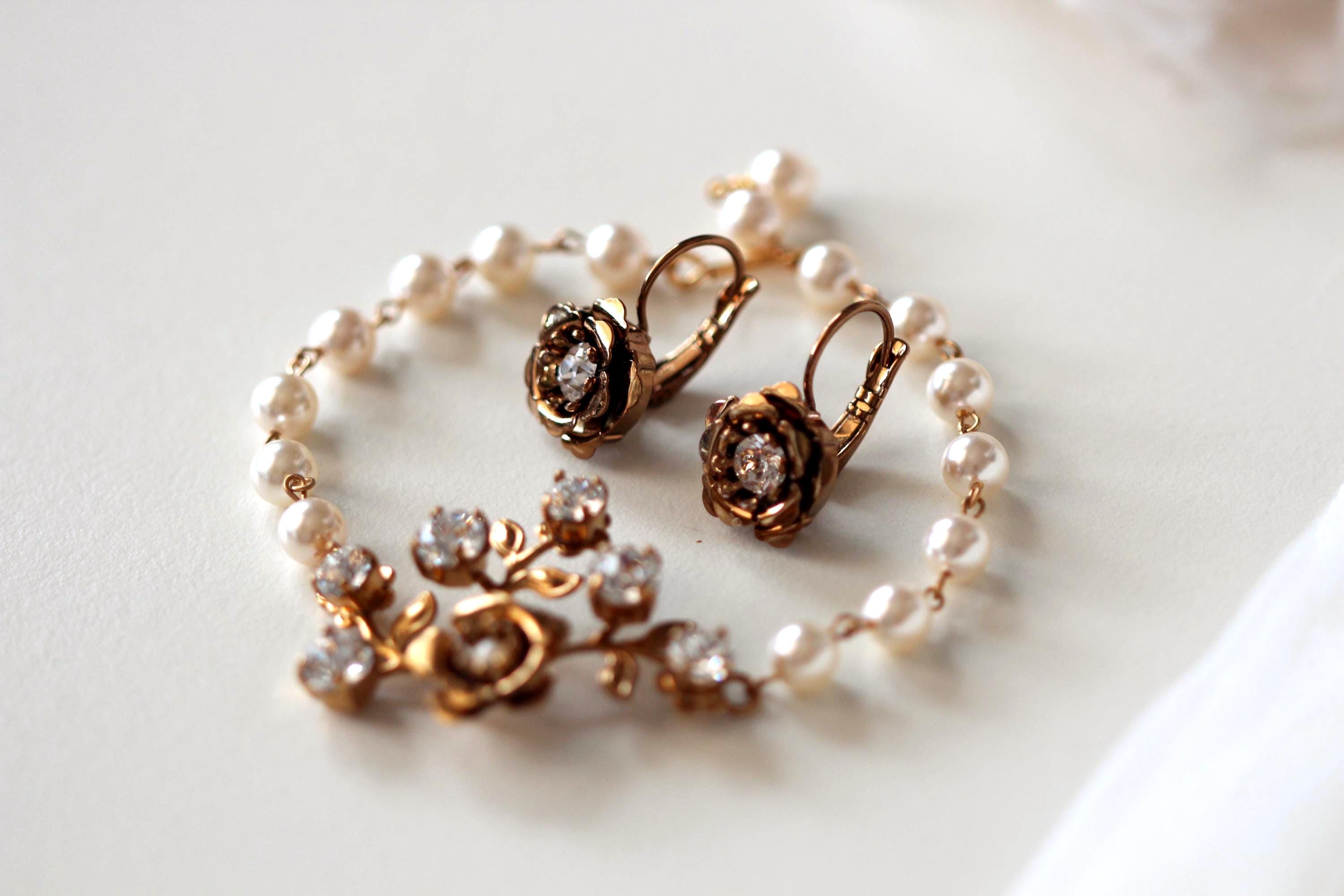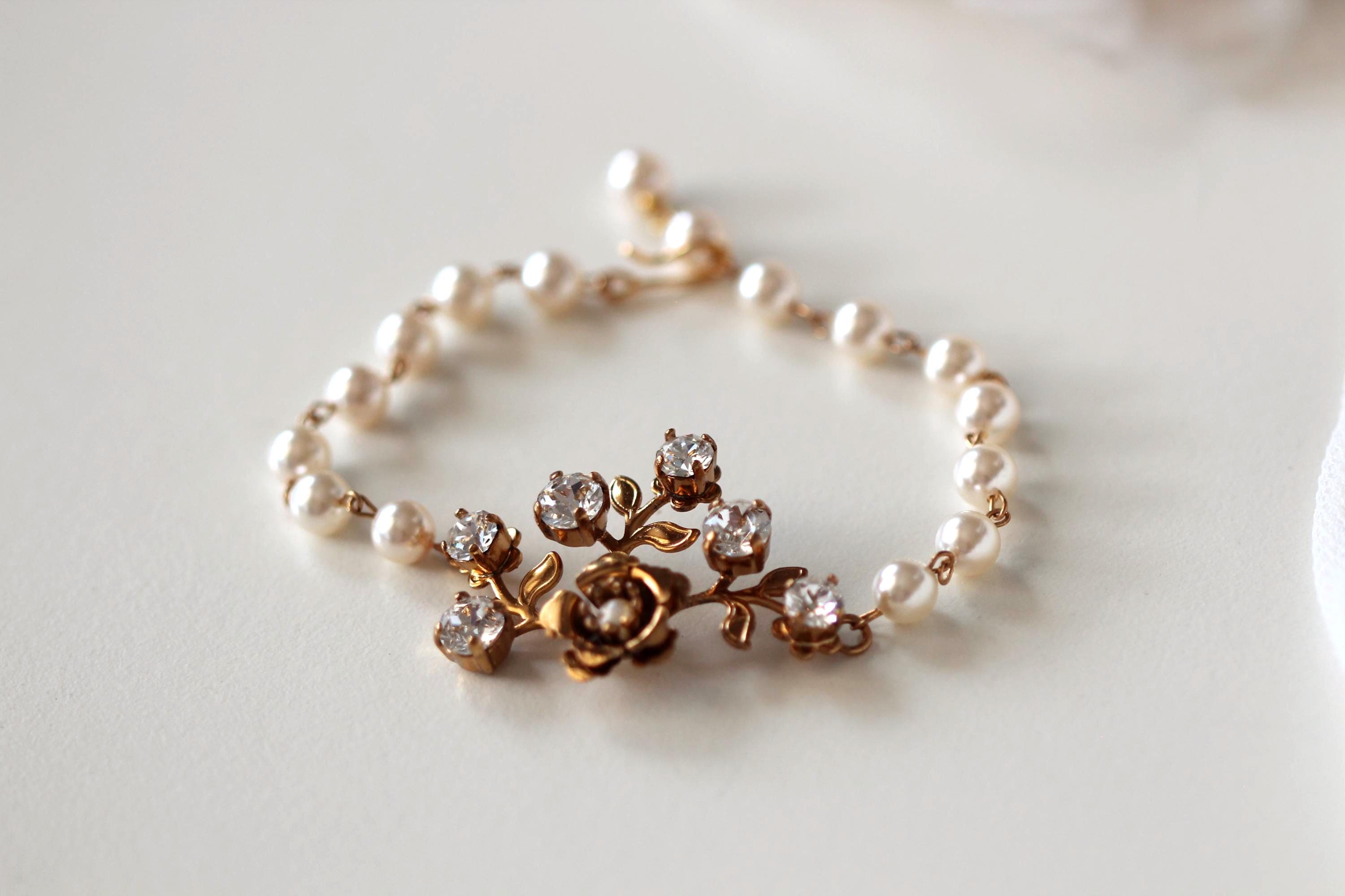 Add a touch of vintage romance to your big day with this dreamy gold floral bridal bracelet or bridal jewelry set. Designed with crystal blossoms and delicate garden-inspired details, this set is perfect for the bride who loves timeless elegance with a whimsical twist. A beautiful gift for yourself or for a loved one on her wedding day.