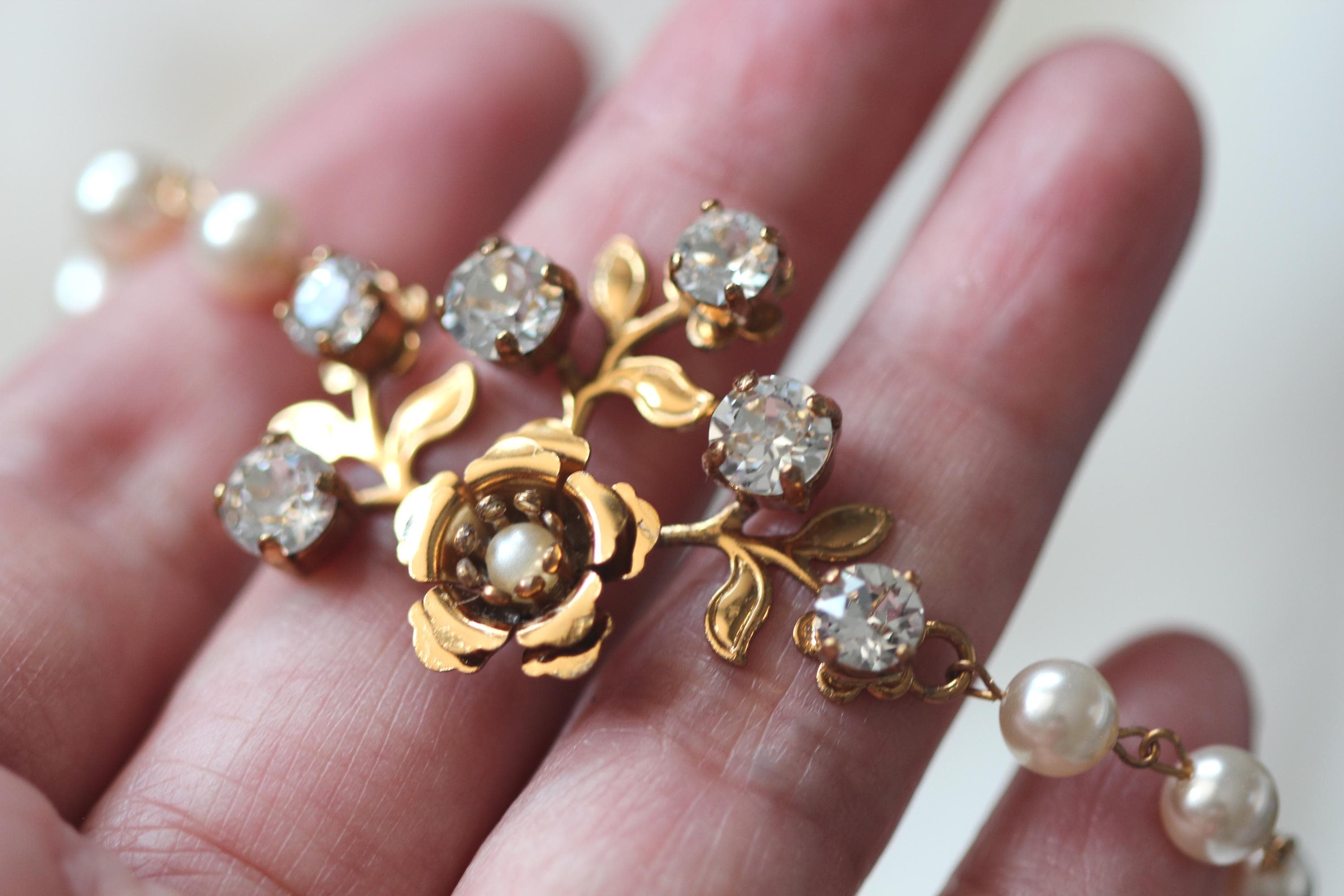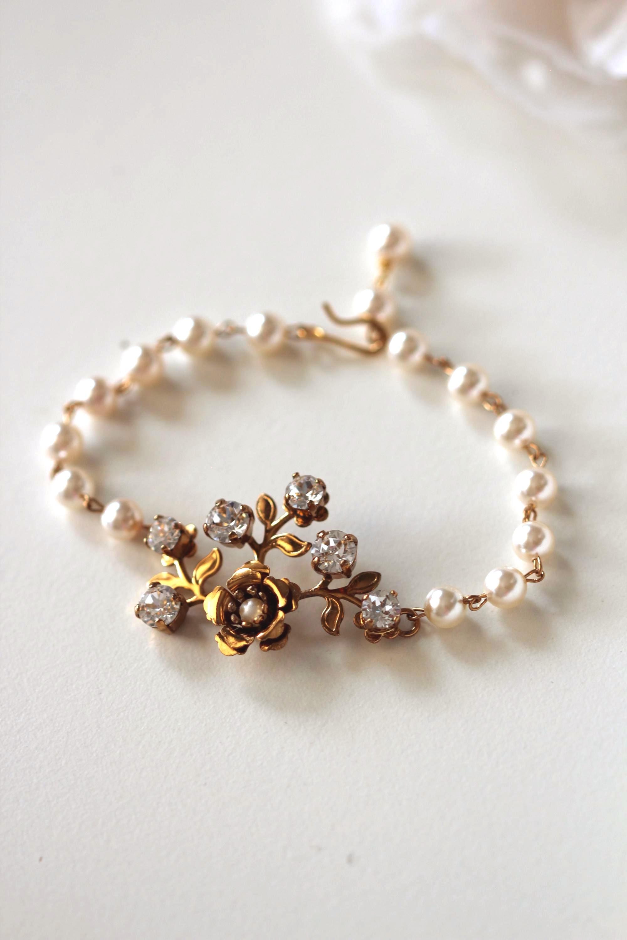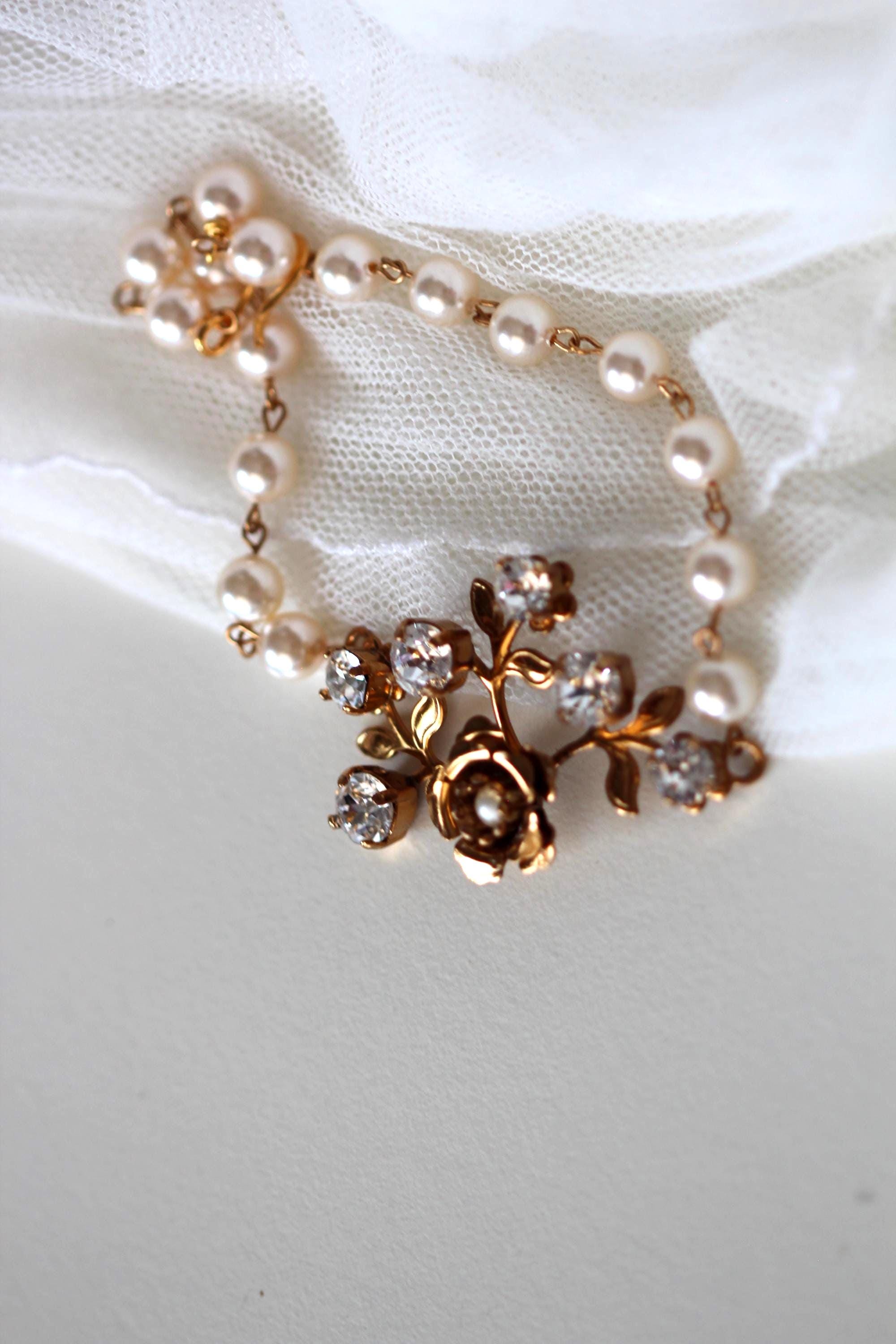 Add a touch of vintage romance to your big day with this dreamy gold floral bridal bracelet or bridal jewelry set. Designed with crystal blossoms and delicate garden-inspired details, this set is perfect for the bride who loves timeless elegance with a whimsical twist. A beautiful gift for yourself or for a loved one on her wedding day.