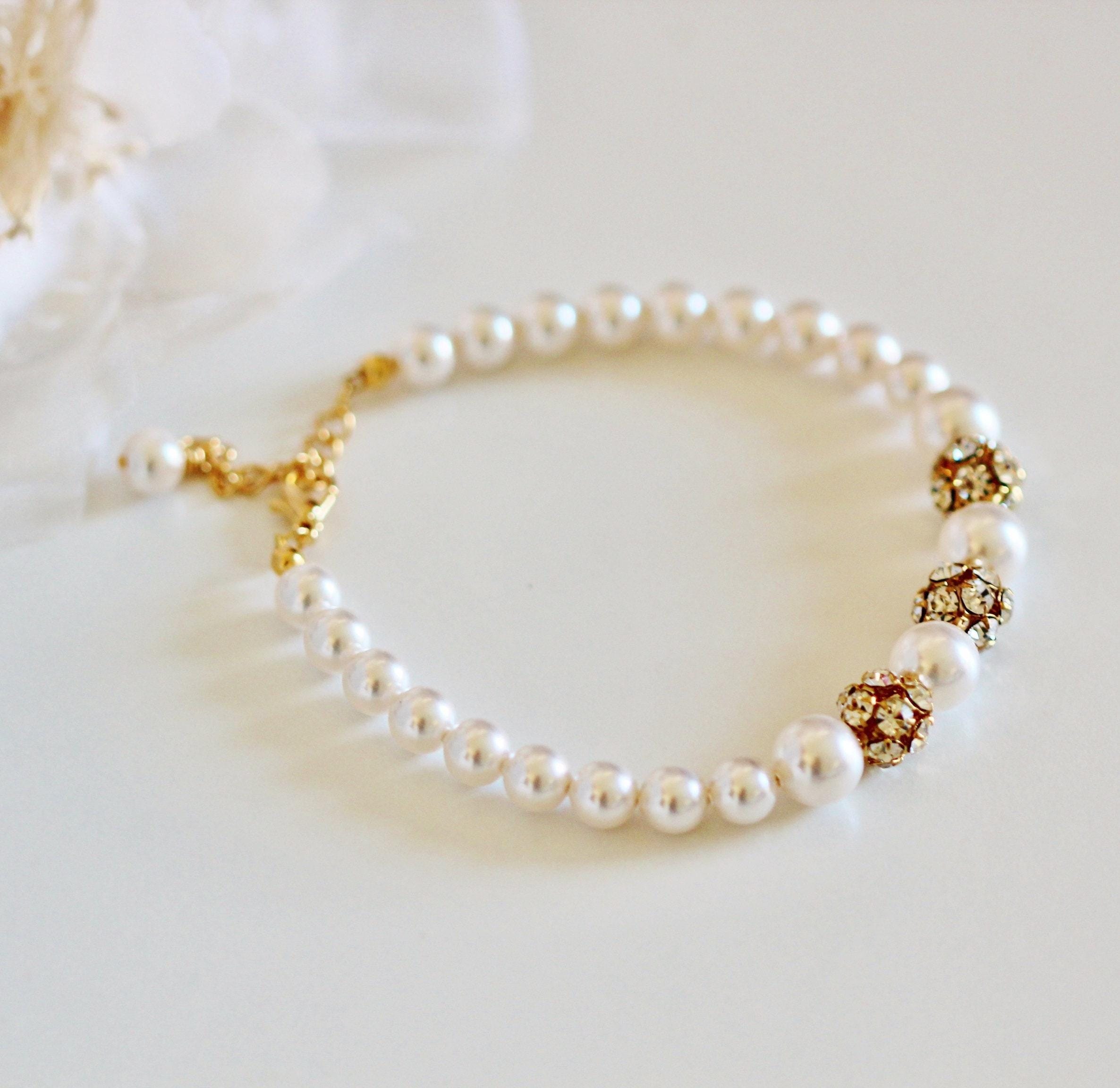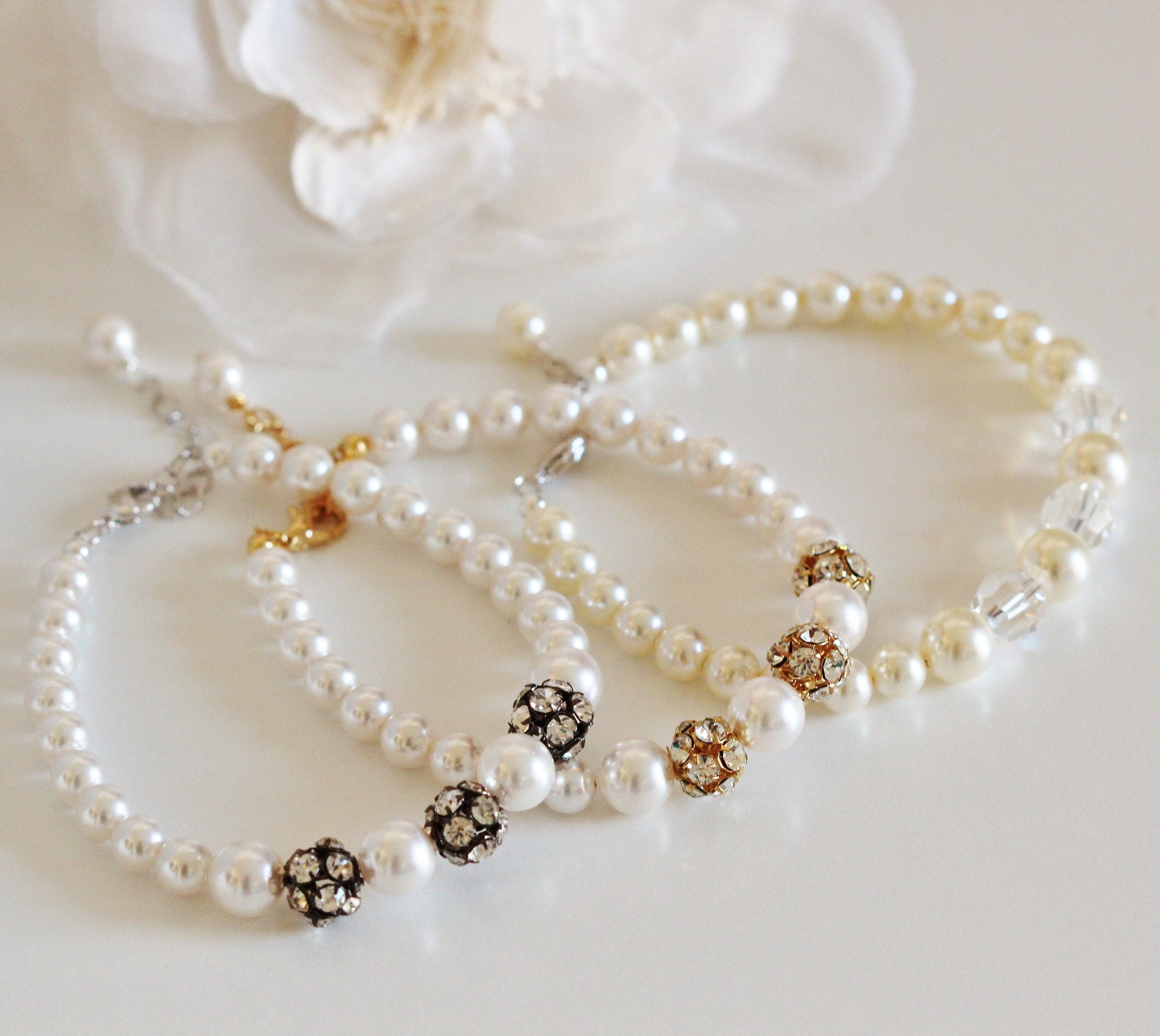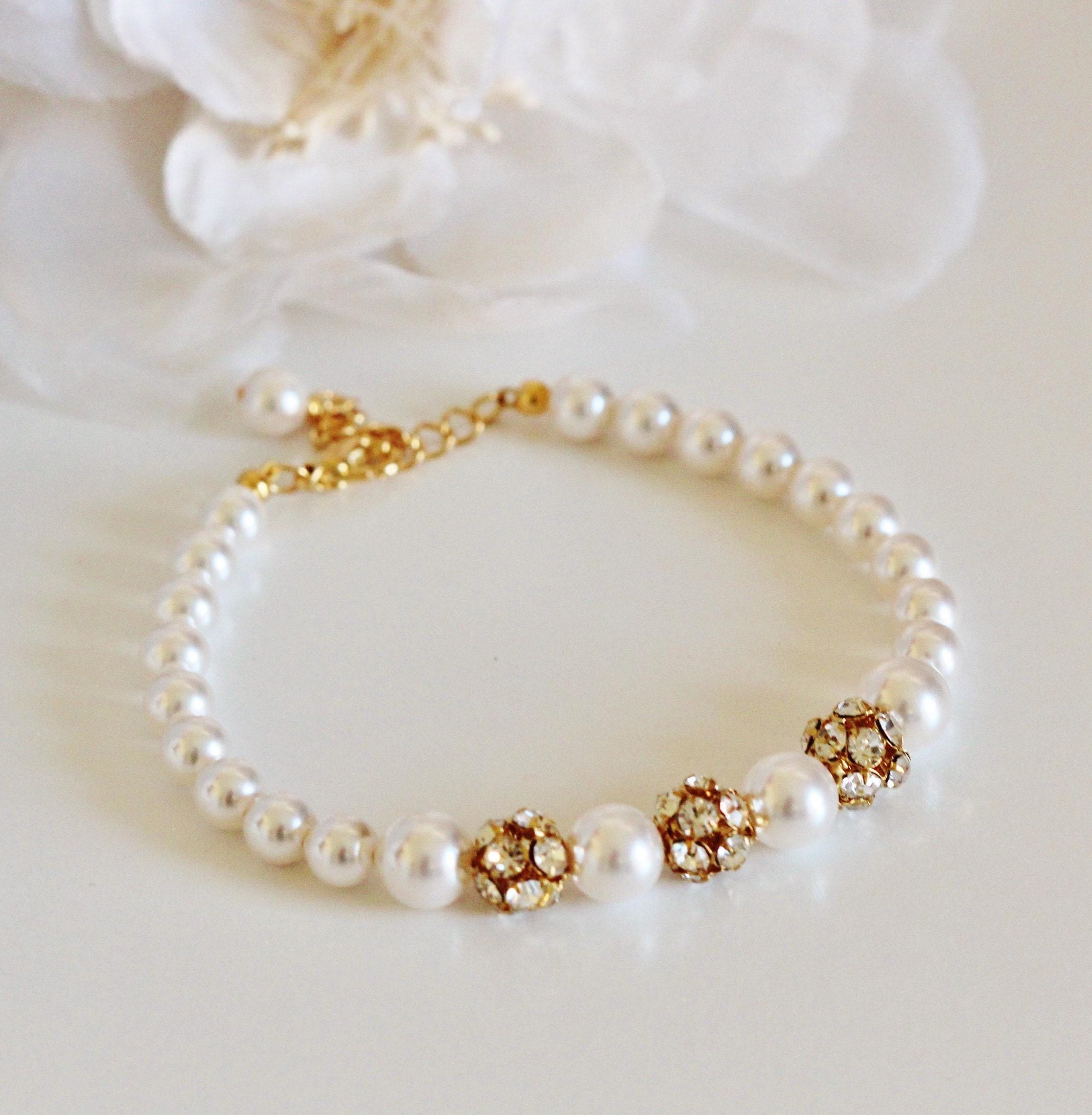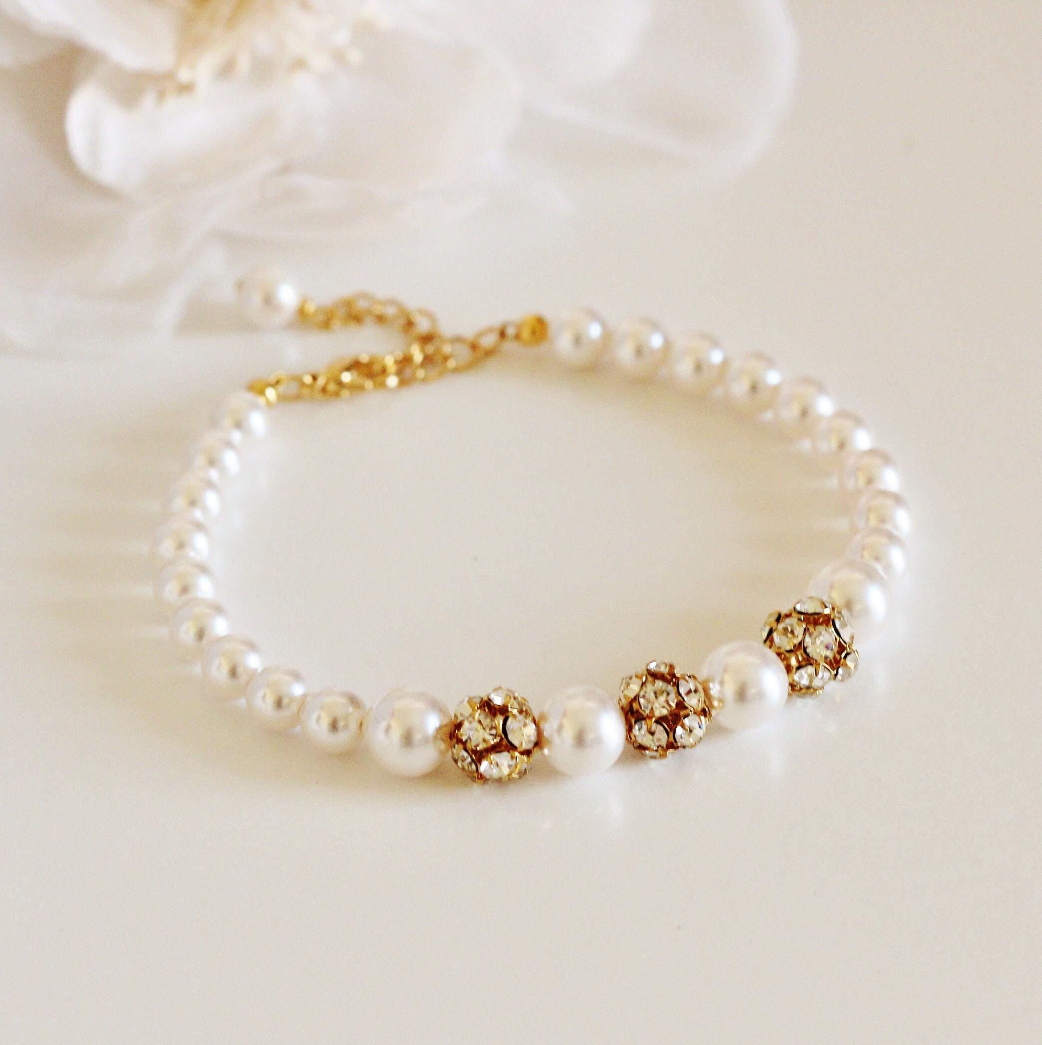 Elegant and Stunning Gold Wedding Bracelet Pearl Bridal Bracelet Finest European Premium Pearl Bracelet Rhinestone Bracelet Bridesmaid Gift Bridesmaid Bracelet Gold Wedding Jewelry