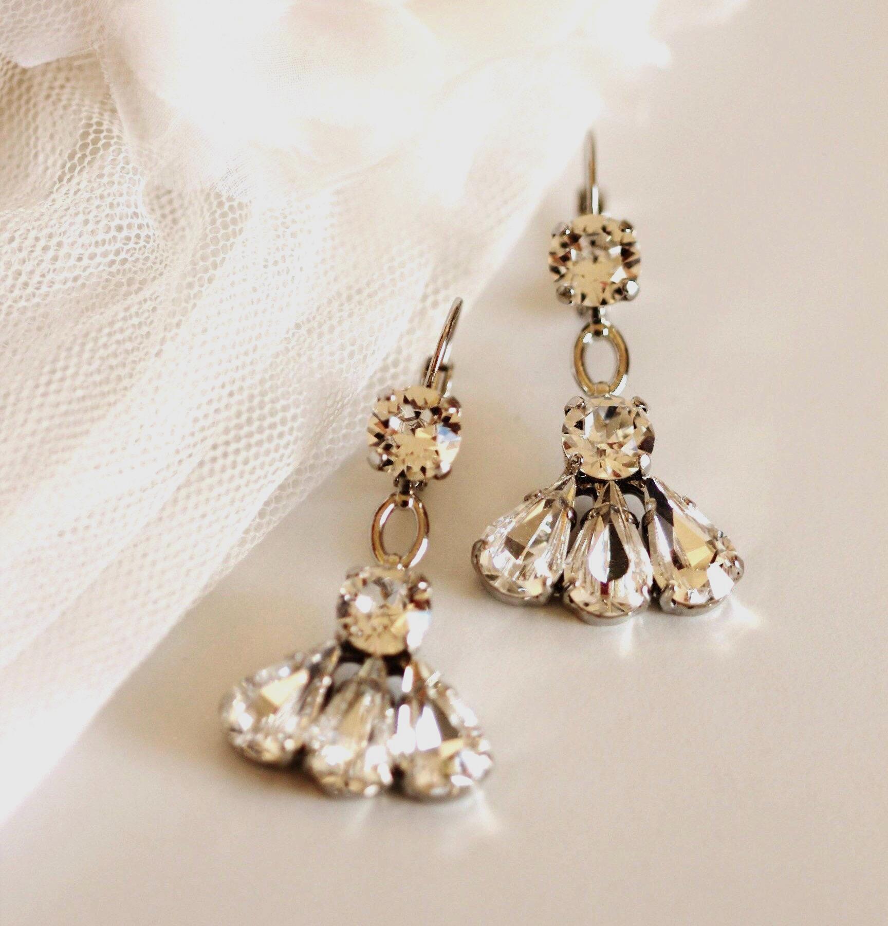 A Sparkly art deco statement earrings for bride, mother of the bride, mother of the groom on weddings, great gift for mom, prom, formal, Anniversary or other special occasions.