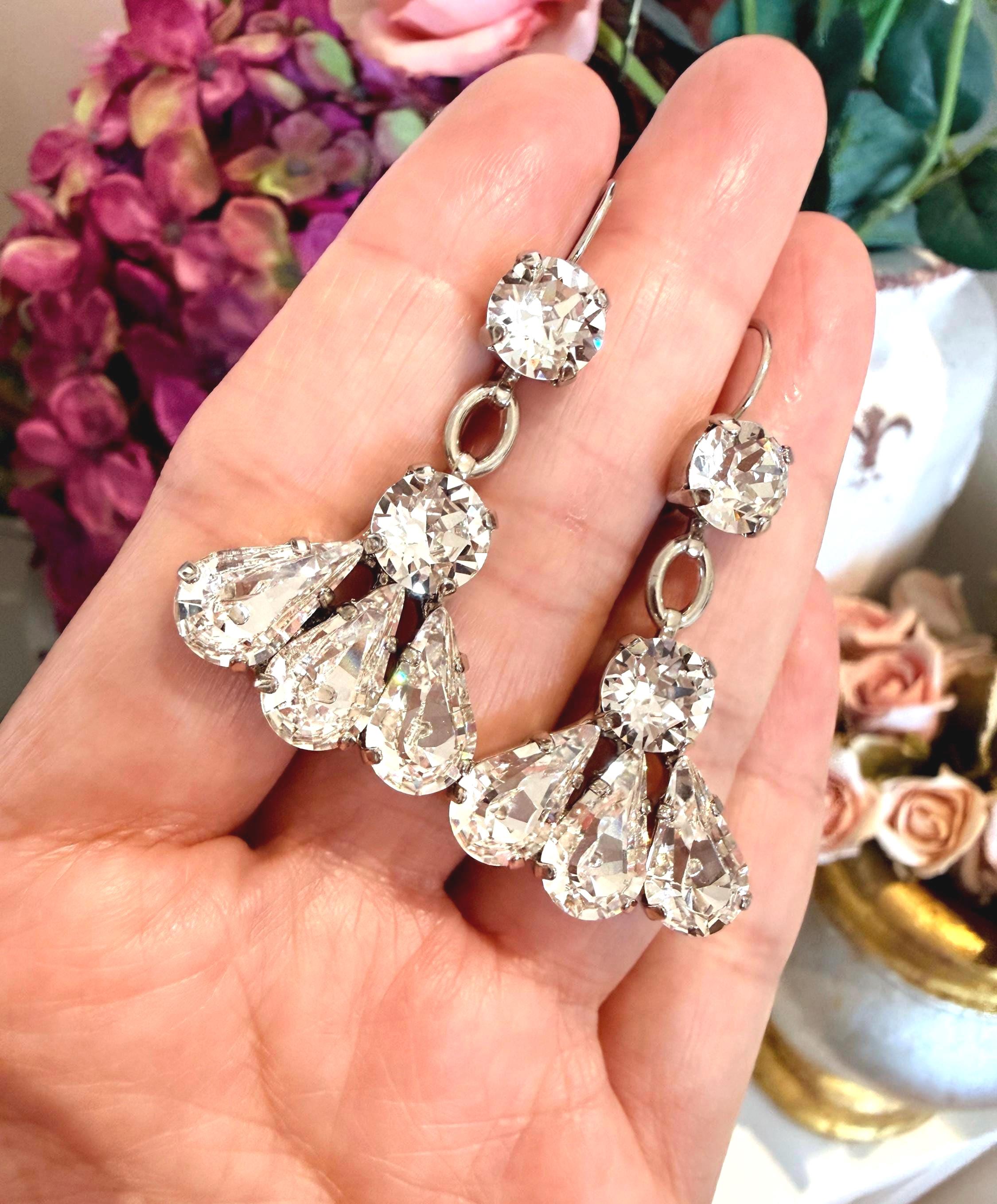 A Sparkly art deco statement earrings for bride, mother of the bride, mother of the groom on weddings, great gift for mom, prom, formal, Anniversary or other special occasions.